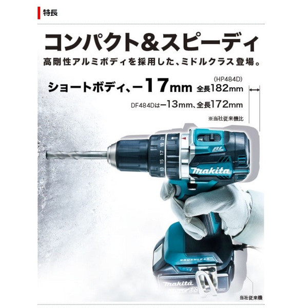 マキタ 充電式ドライバドリル 青 DF484DZ+バッテリBL1860B+充電器DC18RF付 18V対応 makita 当店オリジナルセット品