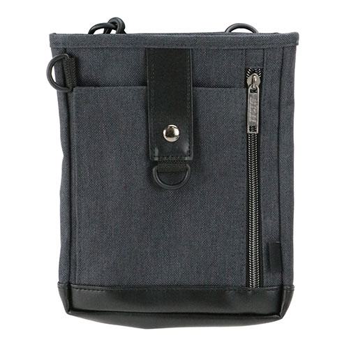 マグネットホック付きのメインポケットです。前面はファスナー付きのポケットです。ベルト通し付きです(ベルト幅60mmまで)。D環付きです。カラビナ付きです。