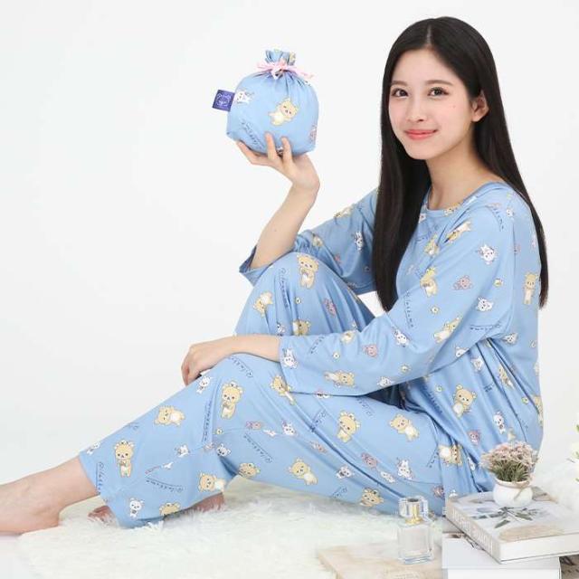 ■商品名:リラックマ トラベルパジャマ レディース Mサイズ(NB)長袖 パジャマ ねまき ルームウエア 部屋着 巾着付き