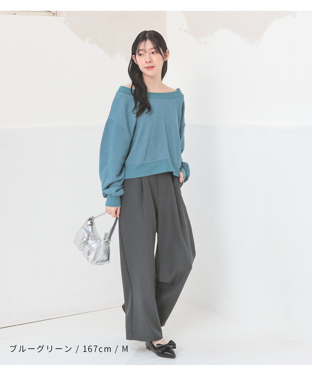 ボートネックとオフショルダーの2Wayデザイン。