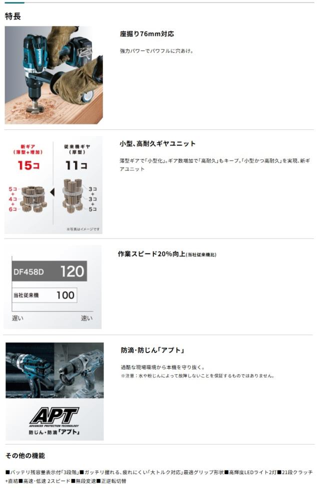 マキタ 充電式ドライバドリル DF458DZ+バッテリBL1860B+充電器DC18WC付 18V対応 makita 当店オリジナルセット品