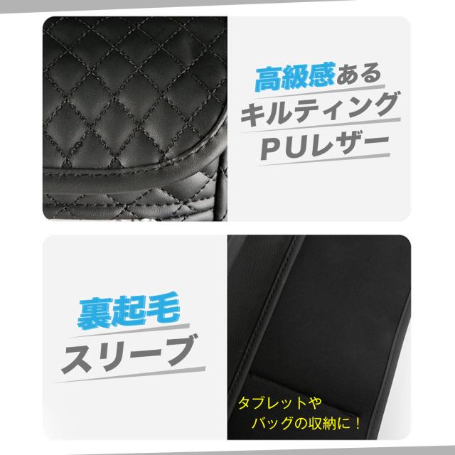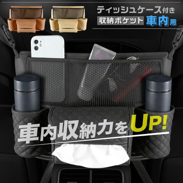 車用 ティッシュケース付き収納ポケット 車内 大容量 収納 ドリンクホルダー レザー調 フェイクレザー ティッシュ ポケット タブレット 携帯 カー用品