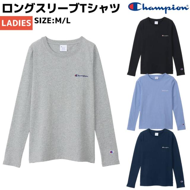 チャンピオン Champion LONG SLEEVE T-SHIRT ロングスリーブTシャツ レディース 綿100% グレー ブラック ブルーネイビー カジュアル 長袖 シャツ コットン CW-X407