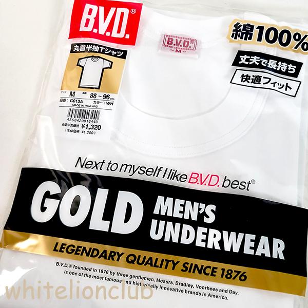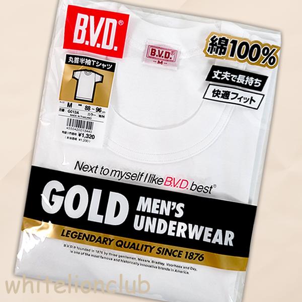 B.V.D. GOLD 綿100% フライス 無地 メンズ 丸首 半袖 Tシャツ G013A M/L 下着 肌着 インナー bvd BVD ビーブイディー ゴールド アンダーシャツ