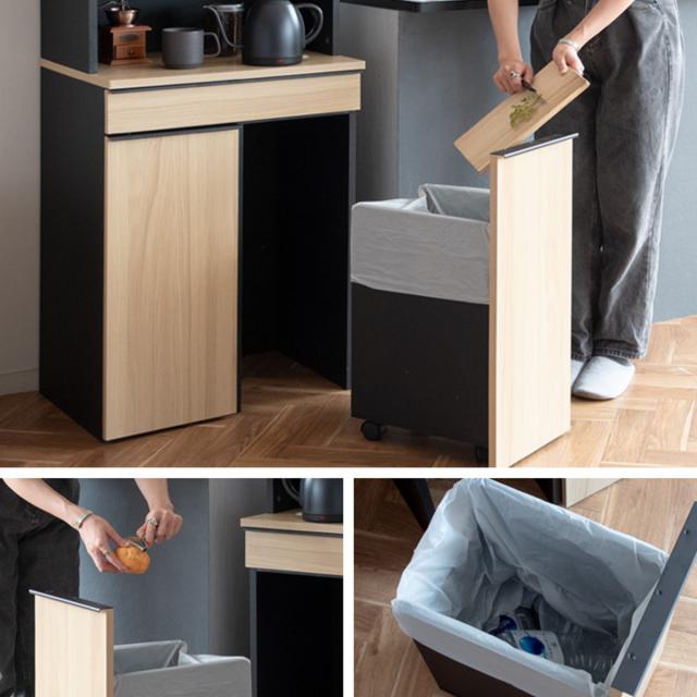 食器棚 45Lゴミ箱 一体型 幅60cm ダストボックスラック ( ゴミ箱付 カップボード ゴミ箱上収納 収納 キッチン 45リットル ラック ゴミ箱セット 棚 キッチン収納 家電ラック 可動棚 コンセント付 ホワイト ナチュラル ブラウン )