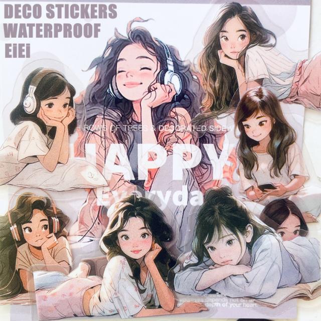 人物シール 少女 イラスト シール 半透明 マットな質感 Ins風 40枚20柄 クリアシール 女の子 女子 イラストステッカー 大人 かわいい 日常 生活 スタイル コラージュ 素材 人物 シール PET 耐水 シール ブラウン デコレーション ハンドメイド 裾分け 日記 手帳 DIY