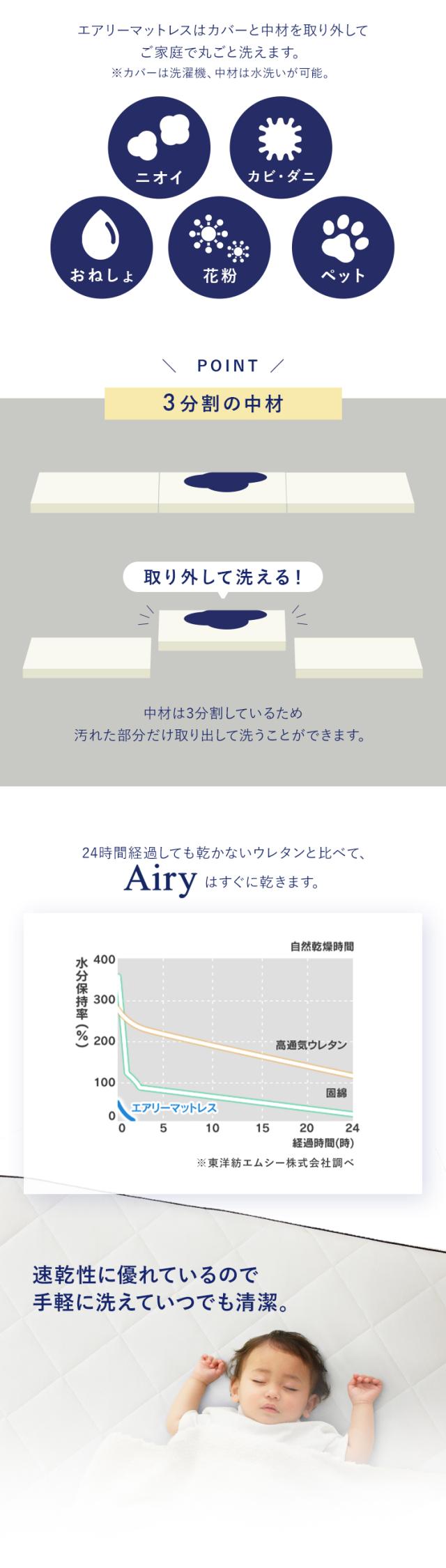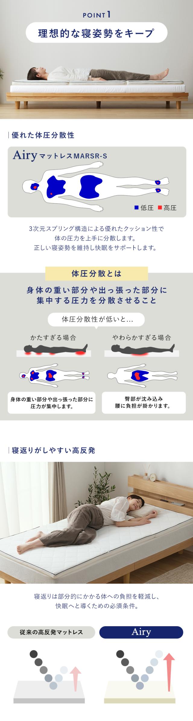 マットレス シングル 三つ折り 高反発 シングルマットレス 厚さ 5cm 体圧分散 通気性 抗菌 防臭 洗える 丸洗い 折りたたみ リバーシブルカバー オールシーズン ベッドマットレス 梅雨 湿気 ダニ Airy エアリー アイリスオーヤマ MARSR-S *