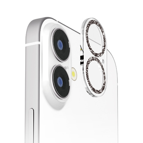 カメラレンズ周りを煌びやかに魅せるiPhone 16/16 Plus用 カメラフルプロテクター ラメブラックです。