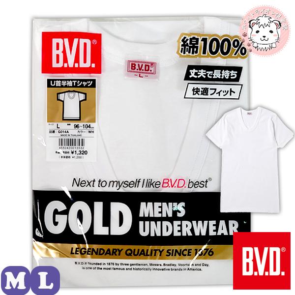 B.V.D. GOLD 綿100% U首 半袖 Tシャツ G014A M/L | フライス 無地 メンズ Uネック 下着 肌着 インナー bvd BVD ビーブイディー ゴールド アンダーシャツ