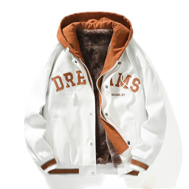 スタジャン メンズ スタジアムジャケット 裏起毛 フード付き 黒 白 厚手 ブルゾン アウター ビッグシルエット カジュアル ストリート アメカジ