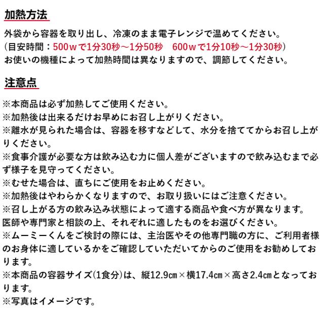 ・料理が簡単…電子レンジまたは蒸し器で温めるだけです。※温める際は必ず容器からお皿などに移しかえてください。