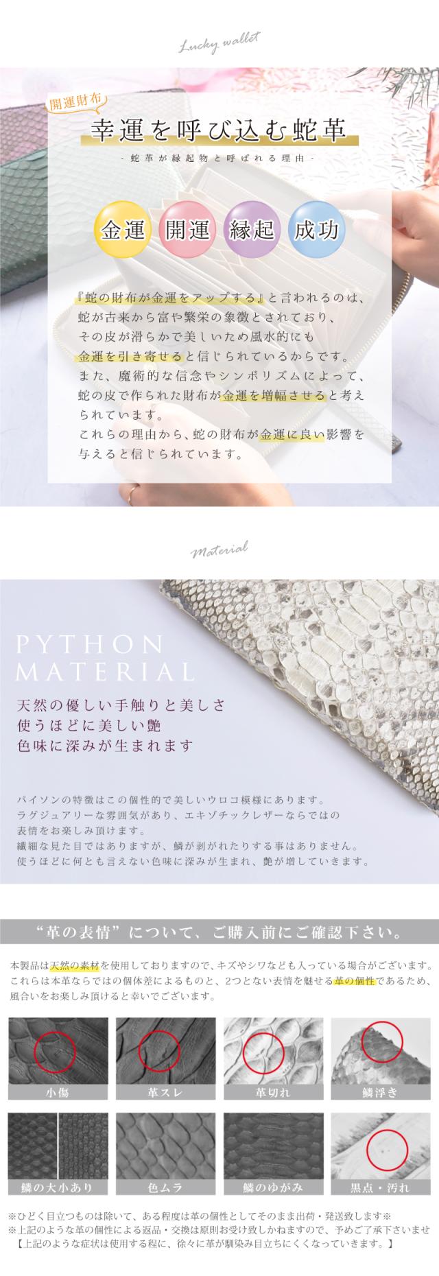| 素材 | 外側:パイソン(ニシキヘビ) 内側:牛革(一部生地) |