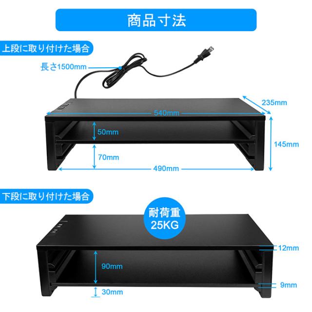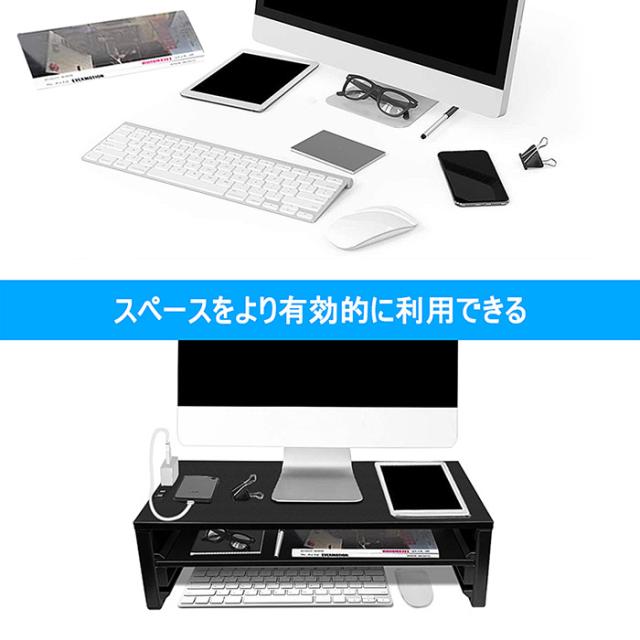 モニター台 コンセント付き パソコン台 机上 キーボード収納 プリンター台 二段 54cm 机上整理 机上台 ラック