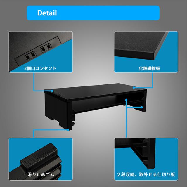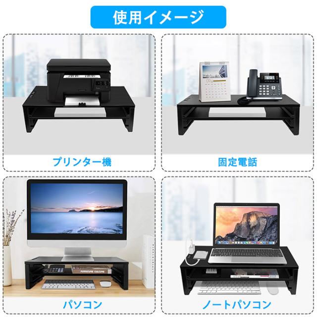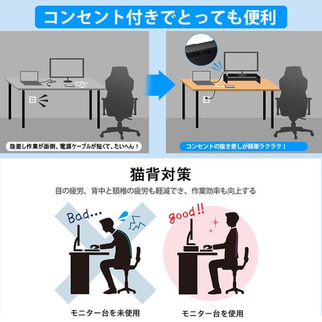 2口コンセント付きなので、モニター台、ノートパソコン台は勿論、プリンター台、ファクス台としても使えます。