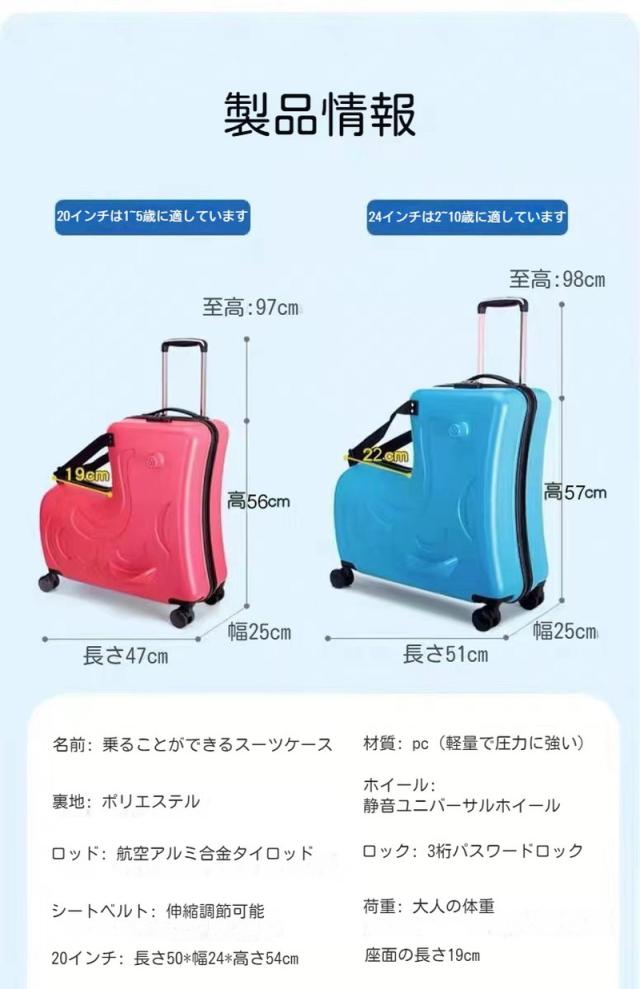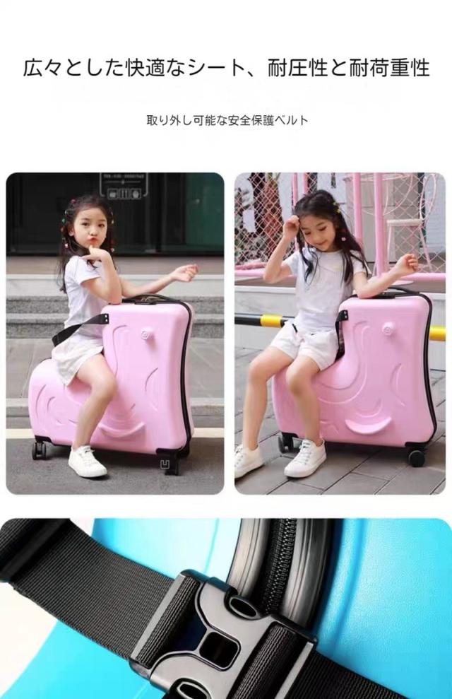 キッズトラベル 子供が乗れるキャリーケース スーツケース4色 子供用 ダブルキャスターで静音 安心素材 旅行 お出かけにも便利 20インチ