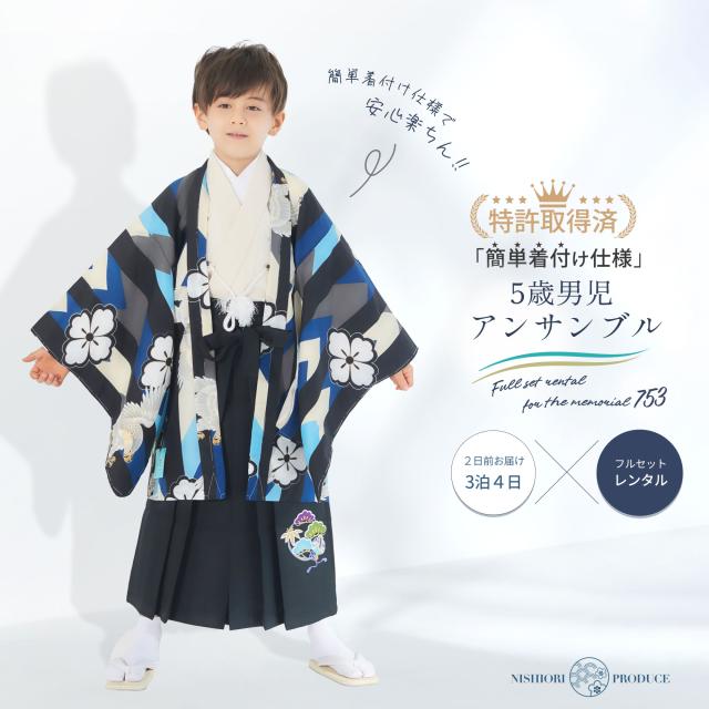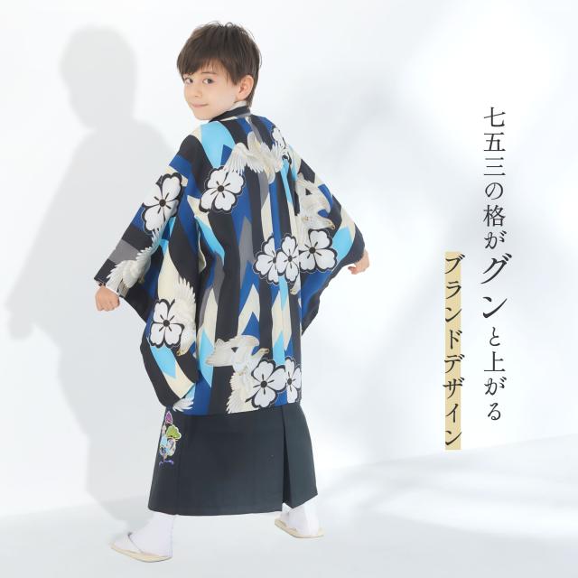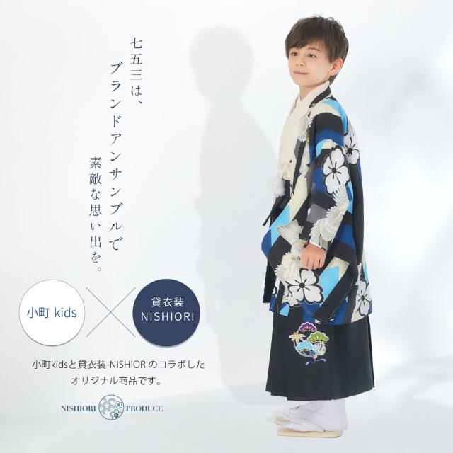 小町kids 五歳 七五三 レンタル 卒園 男児 着物【かんたん着付け】ブランド 羽織袴 アンサンブル フルセット【5歳の七五三 五歳 貸衣装 子供 男の子 お正月 卒業式 往復送料無料】水色 鷹 新品足袋プレゼント