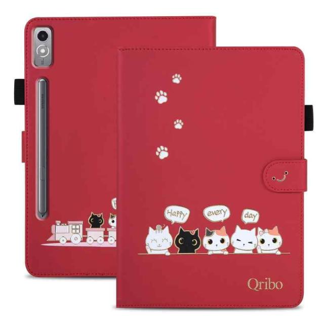 Qribo Lenovo Tab M10 3rd Gen ケース TB-328FU 328XU シンプルなのに可愛いデザイン エンボス加工猫柄 うれしい気持ち 10.1インチ対応 Lenovo Tab M10 第3世代 ケース 複数の視野角 Lenovo M10 3世代 タブレットケース レノボ Tab M10 3rd Gen ケース 保護カバー 防水 の耐久性 滑り防止 美しい 贈り物 友達 (Lenovo Tab P12, レッド)