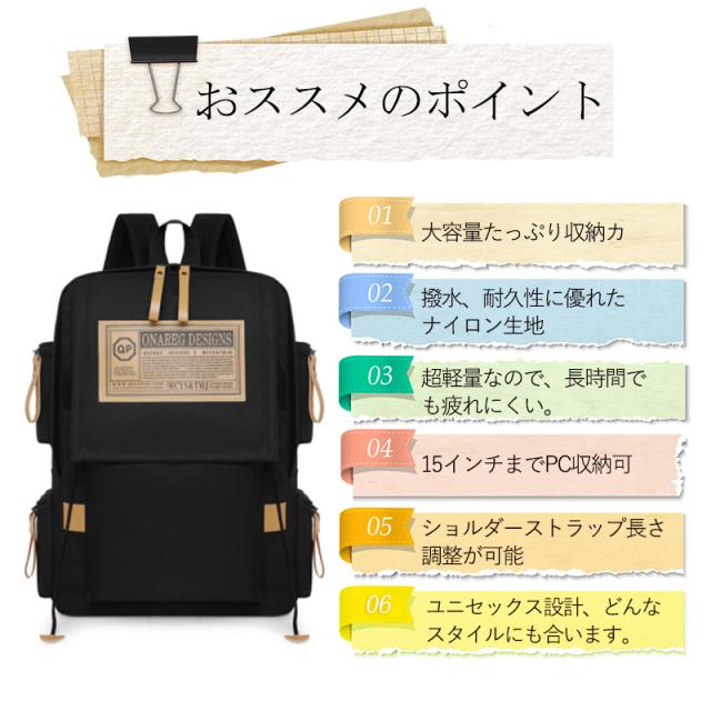 リュック リュックサック バックパック 男女兼用 多収納 ナイロン 大容量 撥水 軽量 カップル 防水 A4 ユニセックス 通学