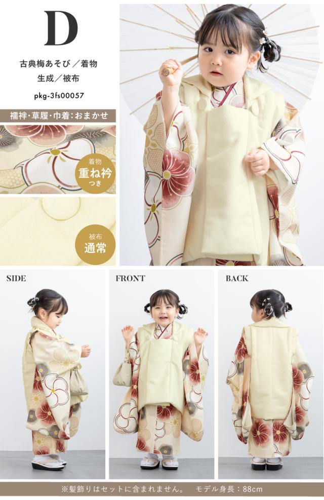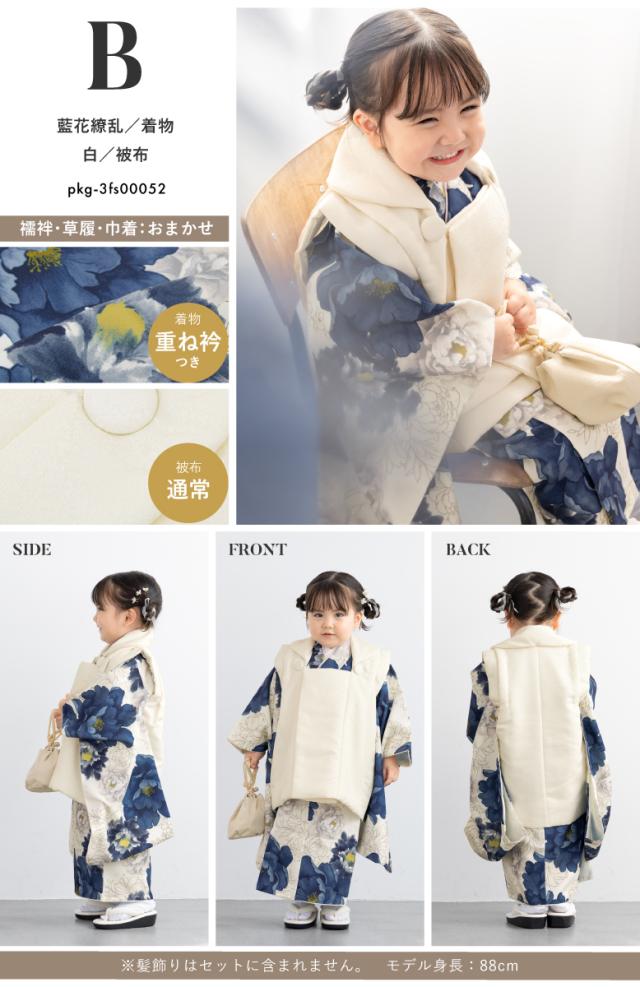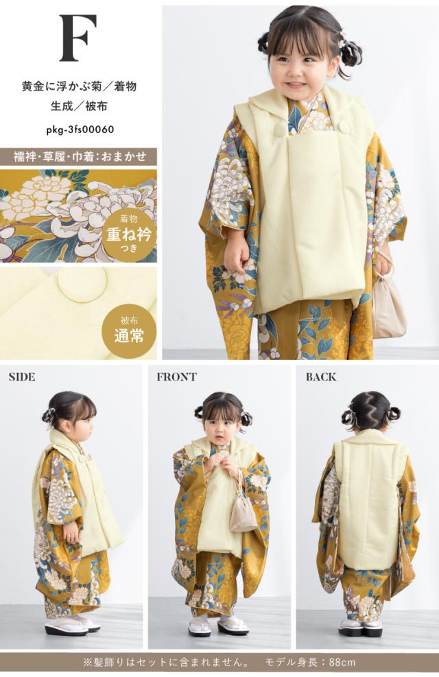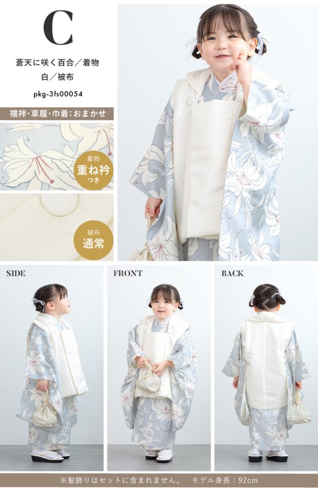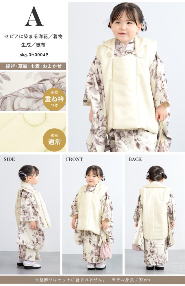 きもの館SOUBIENのプライベートブランド『floro by SOUBIEN』(フローロ)から女の子の七五三やお宮参りにおすすめな女児用の被布着物セットです。
