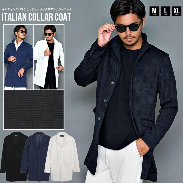 コート メンズ ブランド おしゃれ 長袖 アウター ロングコート チェスターコート イタリアンカラー 立ち襟 キルティング バスケットチェック シンプル 羽織 アウター 細身 タイト 防寒 ビジネス ブラック 黒 20代 30代 40代 男性 男 服 秋 冬 秋冬 ファッション [CAST24-51]