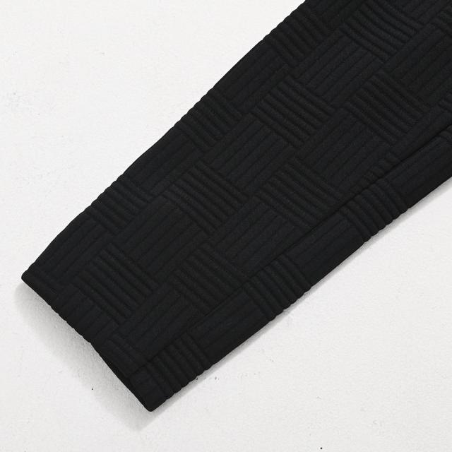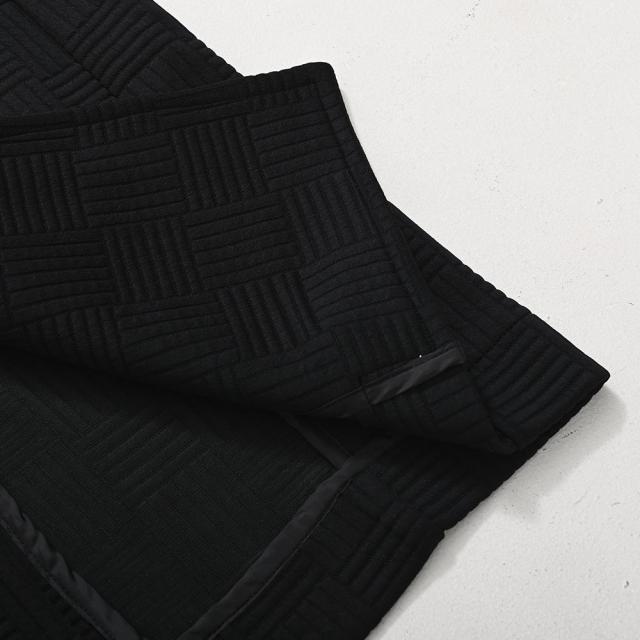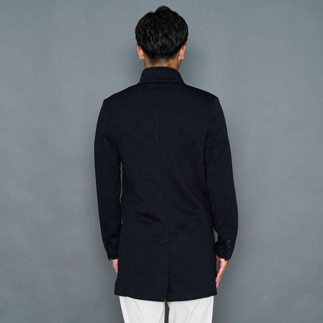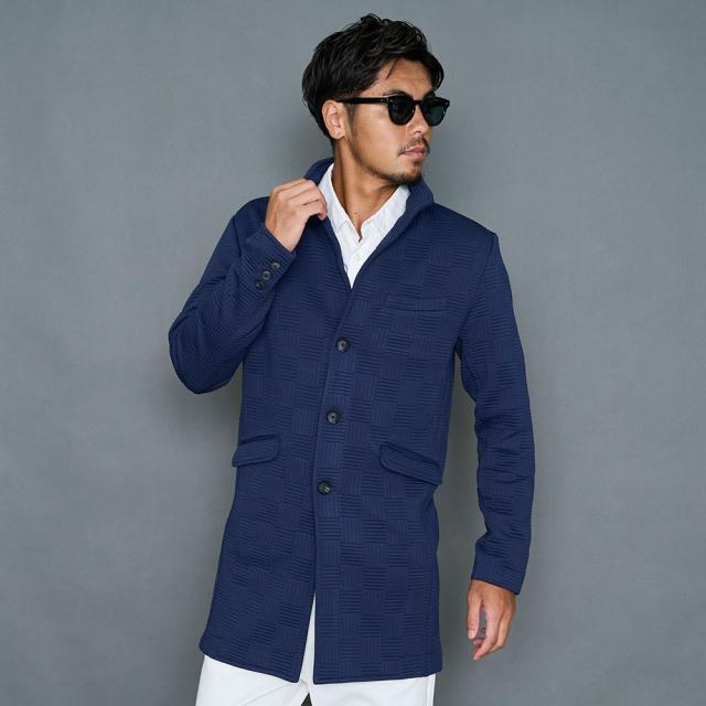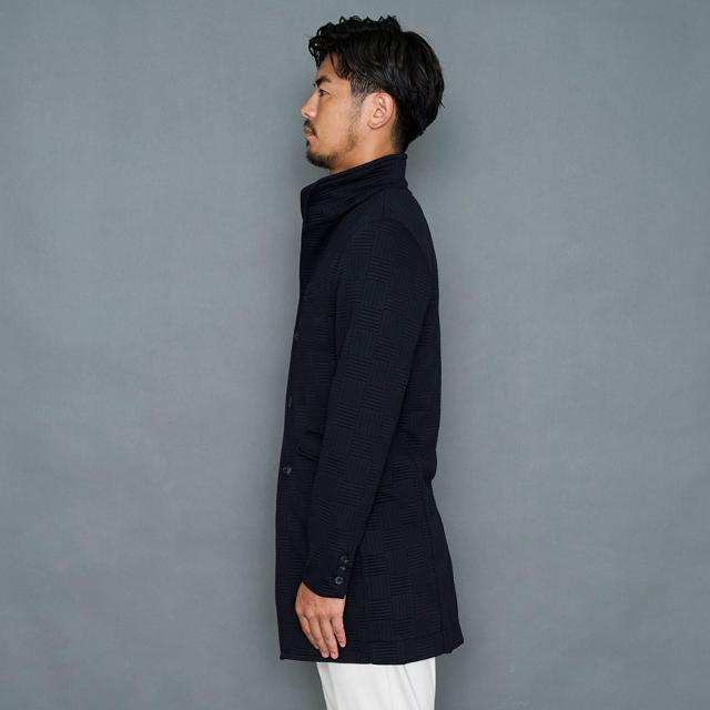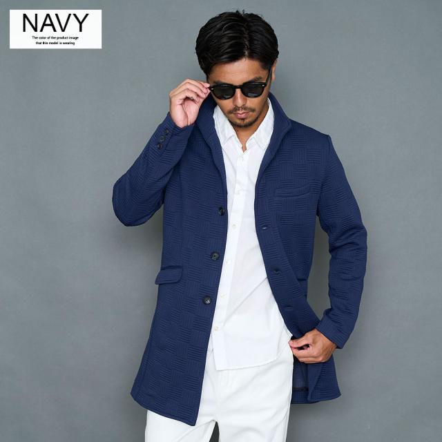 凹凸のあるキルティングのバスケットチェック柄デザインが印象的なロングコート。