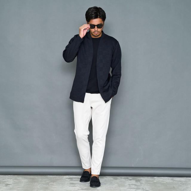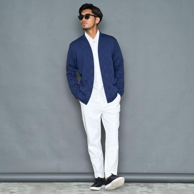 様々なスタイルに対応可能なノーカラーカーディガン。