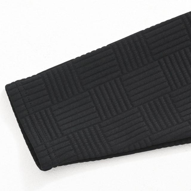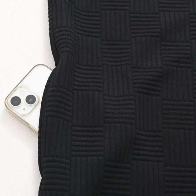 凹凸のあるキルティング生地が派手になりすぎず、スタイリッシュな印象。