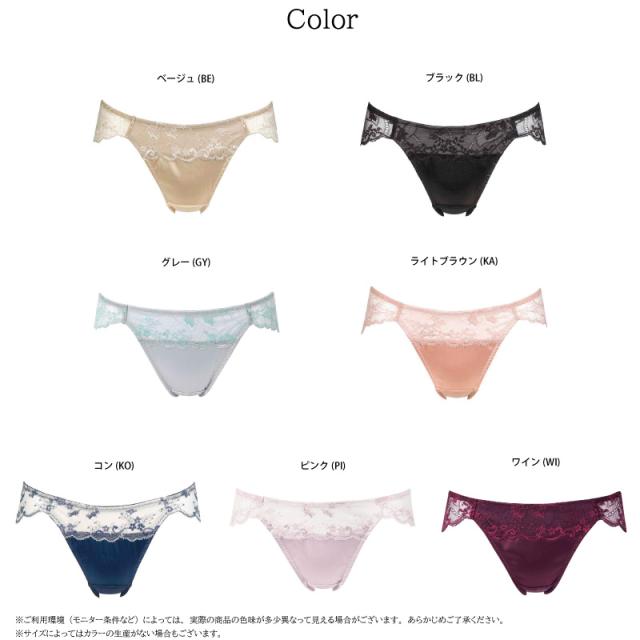 | 特徴 | ナチュラルメイク08G ・シンプルで、インポートライクなデザイン。 レースとサテンの組み合わせがグレード感を演出 ・フロントは裏打ち付きで透けにくい ・はきこみ丈:あさめ(ローライズ) ※サイズによって柄の位置やデザインが異なる場合がございます。 ※商品によって柄の出方が異なる場合がございます。 |