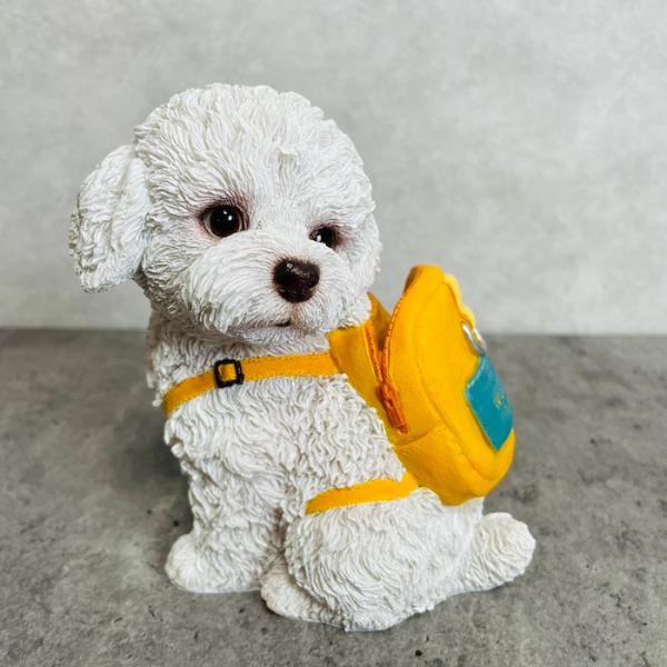 かわいい 犬 置物 リュックを背負う 白いトイプードル貯金箱 動物 おしゃれ 玄関 可愛い インテリア ガーデンオーナメント