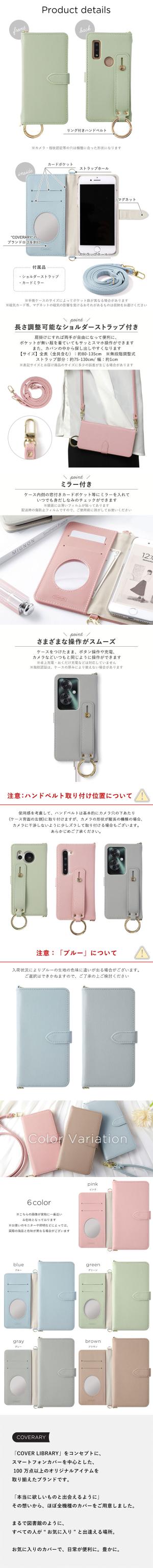 ショルダータイプの手帳型ケースが全5色×ハンドベルト