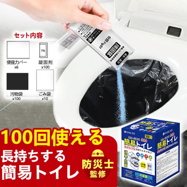 凝固剤×100回分 汚物袋×100枚 便座カバー×6枚 ごみ袋×10枚