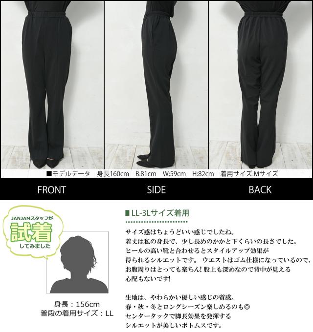フォーマルの場でも活躍する美シルエットフレアパンツ。 XXXXXXL 2XL 3XL 4XL 5XL 6XL ロング丈パンツ 脚長効果 体型カバー カジュアル おしゃれ きれいめ ゆったりサイズ ぽっちゃり女子 プラスサイズ 大きいサイズ レディース ロングパンツ 10分丈パンツ 12分丈パンツ ストレートパンツ フレアパンツ ワイドパンツ ビジネスパンツ きれいめパンツ ロング丈 10分丈 12分丈 マキシ丈 ウエストゴム フロントタック ポケット ベルボトム ブーツカット 春物 秋物 冬物 春服 秋服 冬服 春パンツ 秋パンツ 冬パンツ ボトムス 細見え 細見せ 美脚効果 脚長効果 スタイルアップ 美脚シルエット 股下72cm 股上深め 体型カバー 下半身カバー 高身長さん 大人 オフィス ビジネス セミフォーマル お呼ばれ カジュアル ナチュラル お出掛け おしゃれ きれいめ かわいい かっこいい 着こなし コーデ 春コーデ 秋コーデ 冬コーデ 女性用 婦人用 ミセス 2024 秋新作 30代 40代 50代 sfm 春 秋 冬 黒 LL 3L 4L 5L 6L 7L 13号 15号 17号 19号 21号 23号 bw-saw-bt1013