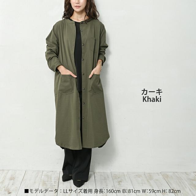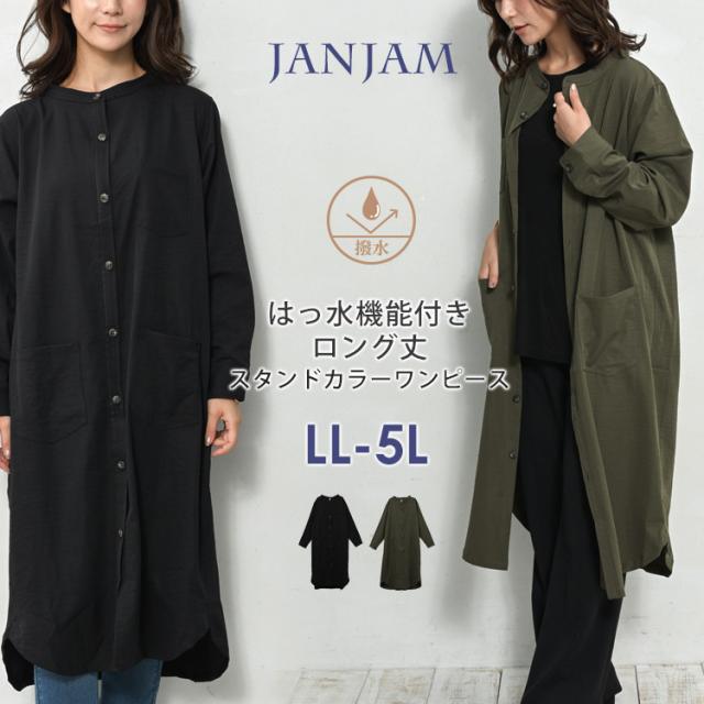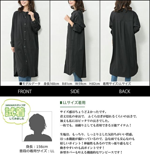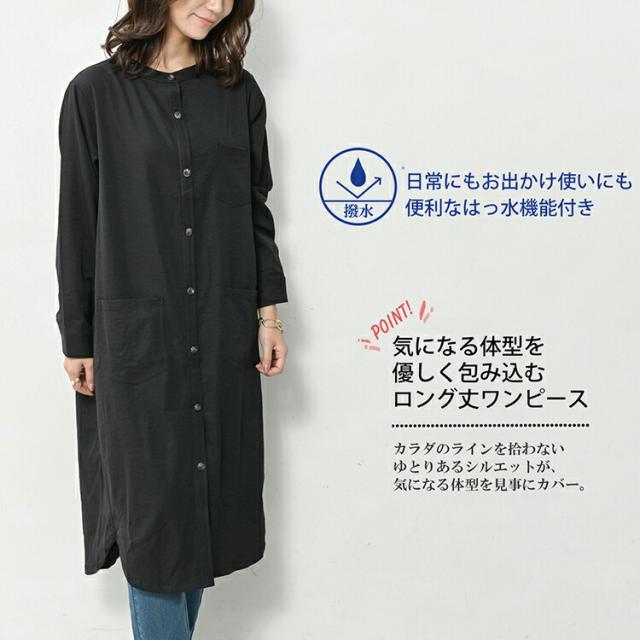 送料無料※沖縄/北海道対象外 大きいサイズ レディース 撥水加工ワンピース ロング丈 長袖 バンドカラー ポケット LL/3L/4L/5L ゆったりサイズ ぽっちゃり女子 プラスサイズ 秋新作