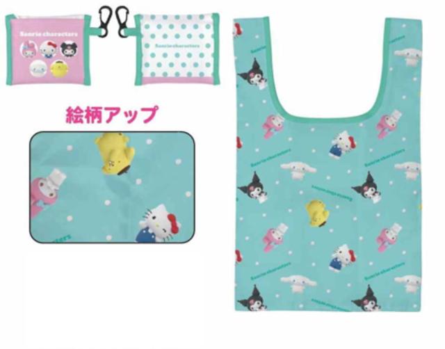 【サンリオキャラクターズ】ポケット付きプチエコバッグ【ミント】【ハローキティ】【マイメロディ】【クロミ】【シナモロール】【かばん】【カバン】【鞄】【収納】【買い物】【ショッピ