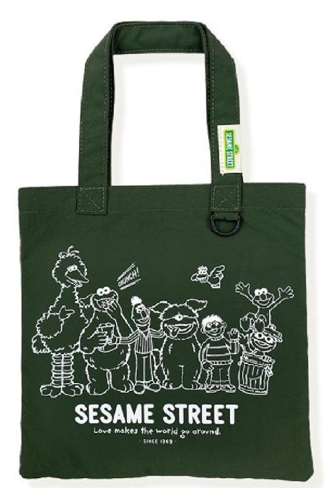 マリSST-092 【送料無料】【セサミストリート】ミニフラットトートバッグ【カーキ】【エルモ】【クッキーモンスター】【カバン】【かばん】【鞄】【収納】【お出かけ】【アウトドア】【雑貨】【グッズ】【かわいい】