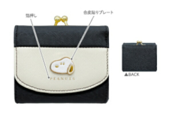 クラ125949 【スヌーピー】【SNOOPY】三つ折り財布【ブラック】【黒】【プレート】【ピーナッツ】【ウッドストック】【すぬーぴー】【サイフ】【財布】【さいふ】【ウォレット】【折りたたみ】【コンパクト】【子供】【キッズ】【雑貨】【グッズ】【かわいい】