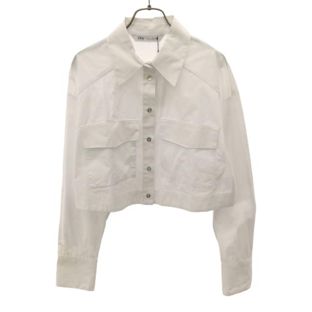 未使用 ザラ 長袖 クロップド コットンシャツ S ホワイト ZARA タグ付き レディース