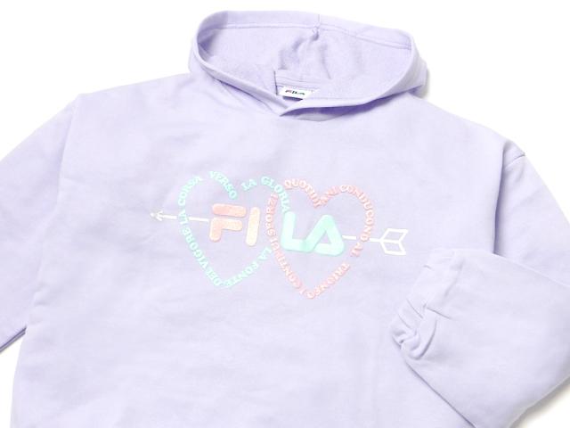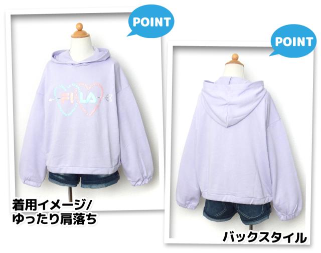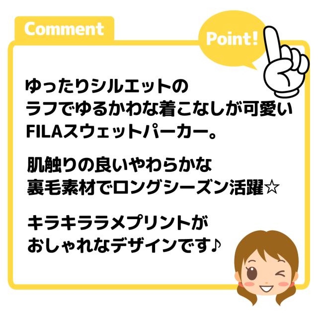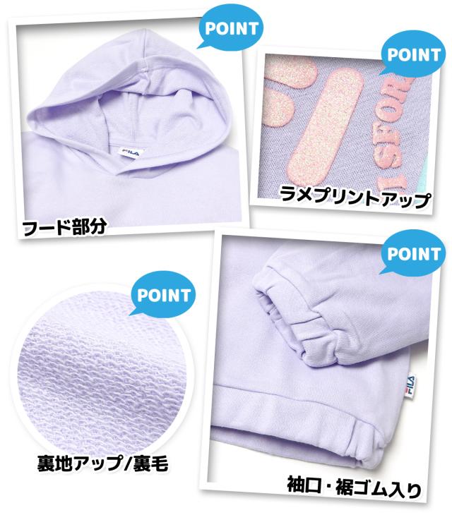 【送料無料】女児 ジュニア 裏毛 長袖 パーカー FILA/フィラ スウェット ゆったりビッグシルエット ラメプリント 子供服 女の子 140cm 150cm 160cm iw-1158b-pp【メール便対応】