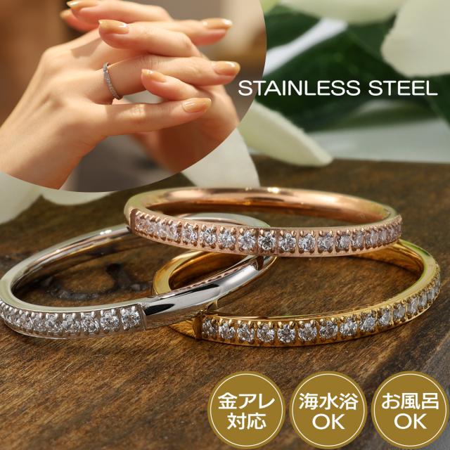 リング 指輪 ステンレス レディース ハーフエタニティリング ピンキーリング ファランジリング サムリング レイヤードリング シルバー ゴールド ピンクゴールド 金属アレルギー ニッケルフリー つけっぱなし キラキラ