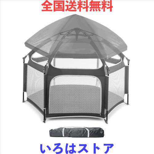 UBRAVOO ベビーサークル キッズテント 折りたたみ 六角形 ベビーフェンス 子供用テント コンパクト 洗える可能 日除け付き 収納バッグ付き メッシュ プレイヤード 収納便利 持ち運び便利 室内遊具 屋外遊具 組み立て不要 出産祝い プレゼント
