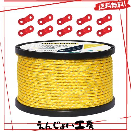 ◆商品名:【Amazon限定ブランド】テントロープ ガイロープ 4mm 反射 パラコード タープロープ ガイライン 自在金具付き 50M/30M アルミ自在金具 ボ