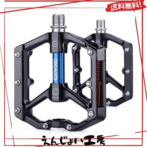CXWXC 自転車 ペダル フラットペダル ロードバイク/クロスバイク/mtbなど用 リフレクター付 アルミ製(CX-930BU) (ブラック/ブルー)