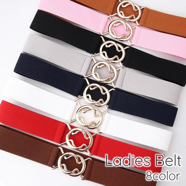 ベルト ゴムベルト レディース 8の字バックル だるまひっかけ 伸びる 簡単 便利 無地 単色 シンプル 女性 カジュアル デイ