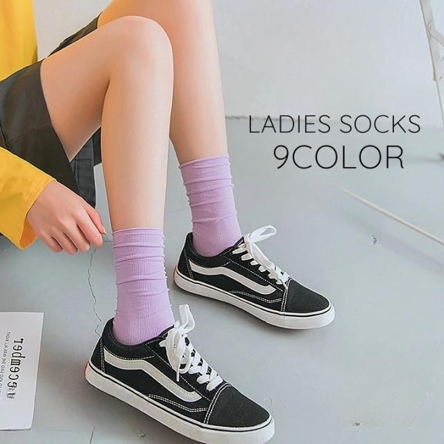 靴下 クルー丈 ソックス レディース 女性 婦人 くつ下 薄手 リブ 無地 単色 シンプル カジュアル 普段使い 通勤 通学