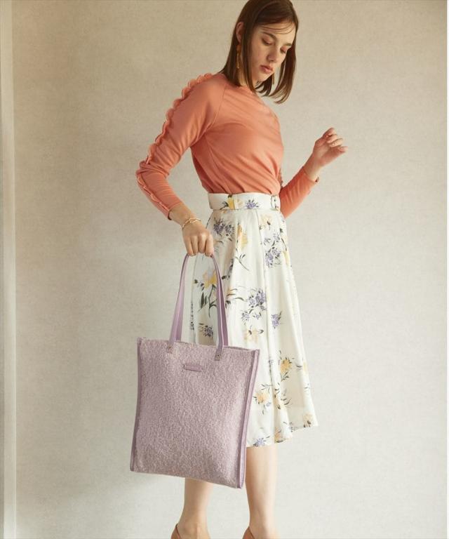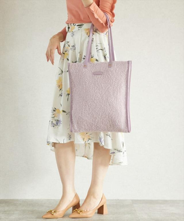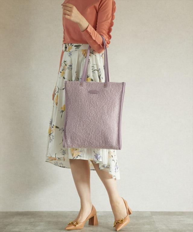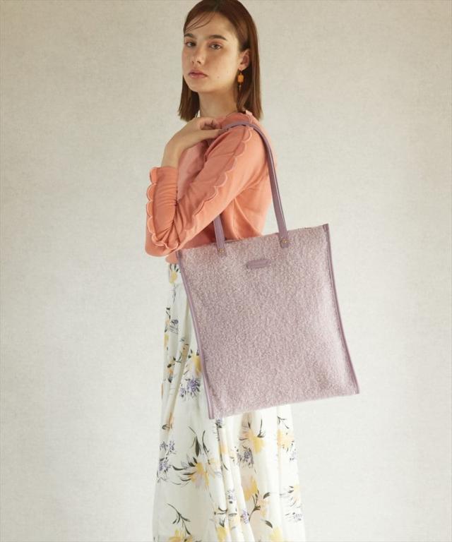 ブークレ素材のモコモコとした生地が、一気に季節感を演出してくれるフラットトートバッグ!