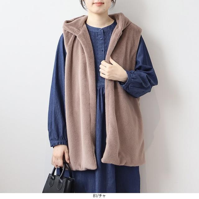 エムビー ミントブリーズ (MB mint breeze)/【大きいサイズ】エコファー フード ロング ベスト