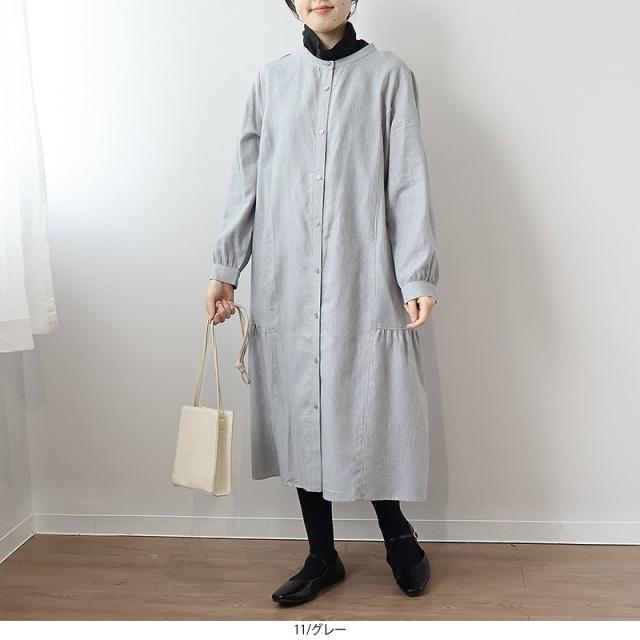 柔らかなビエラ素材を使用し暖かな雰囲気に仕上げたシャツワンピース。
