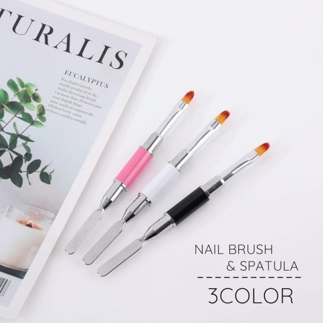 ネイルブラシ スパチュラ 2way ネイルケア用品 ネイルアート用品 セルフネイル ネイル筆 平筆 ジェルネイル ポリジェル ネ