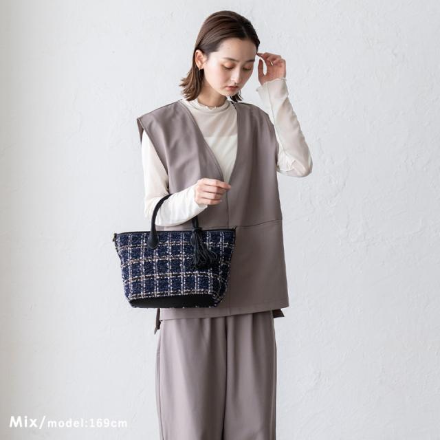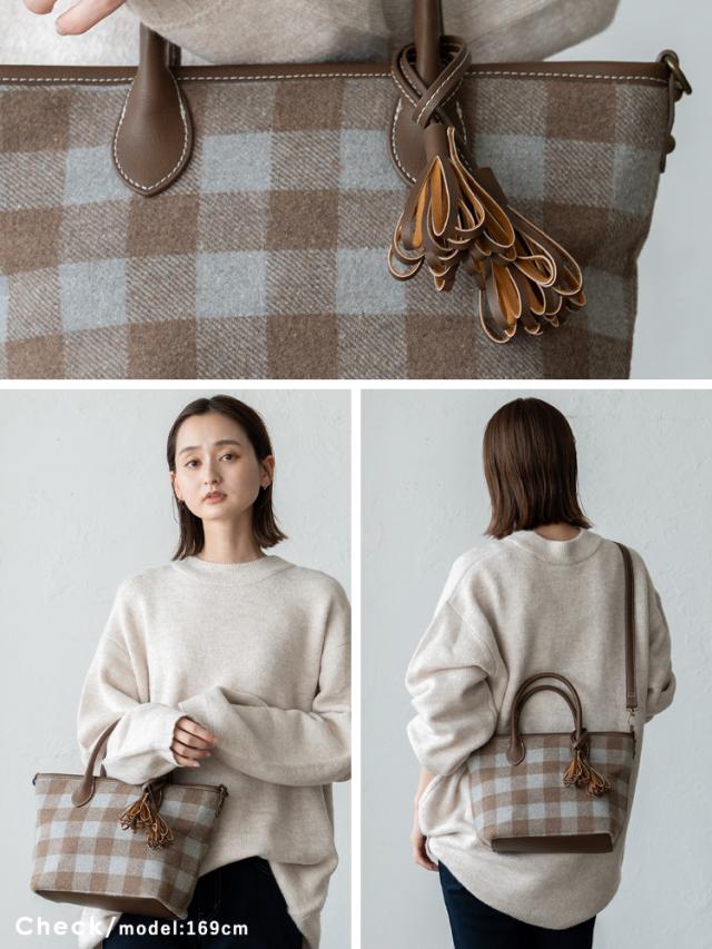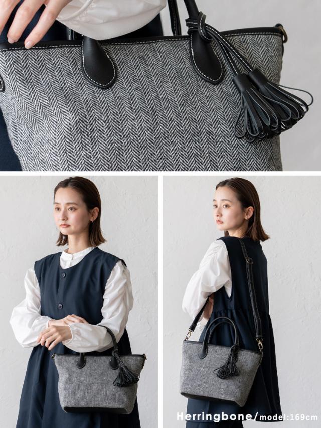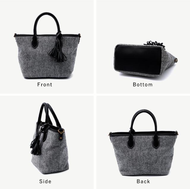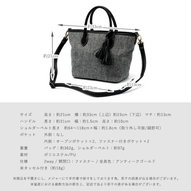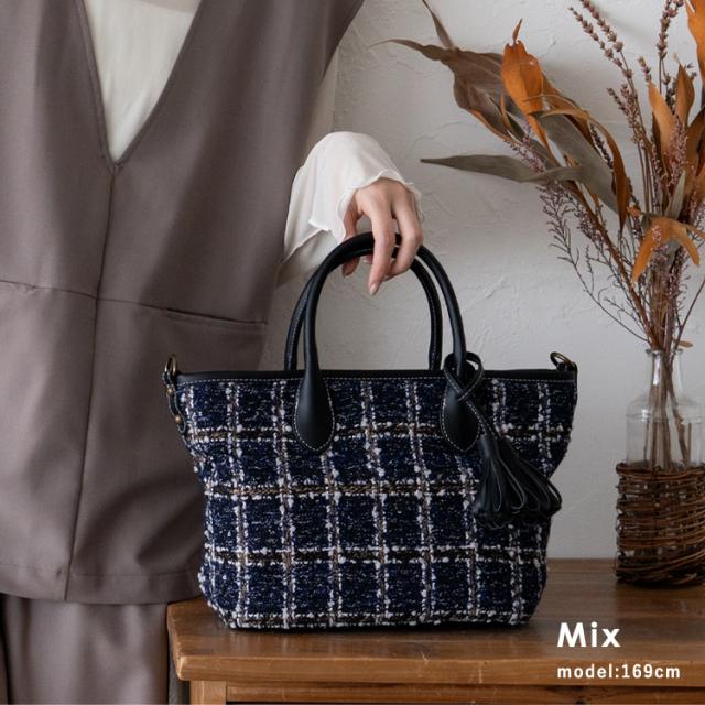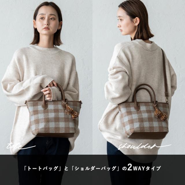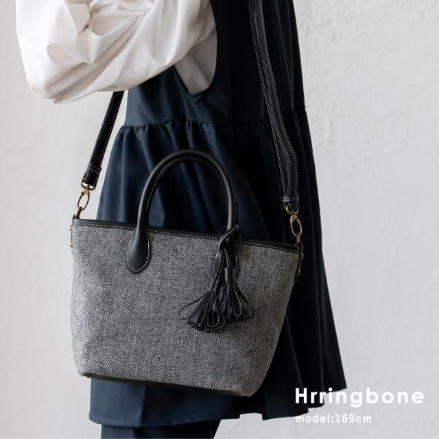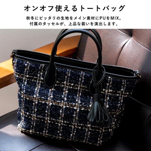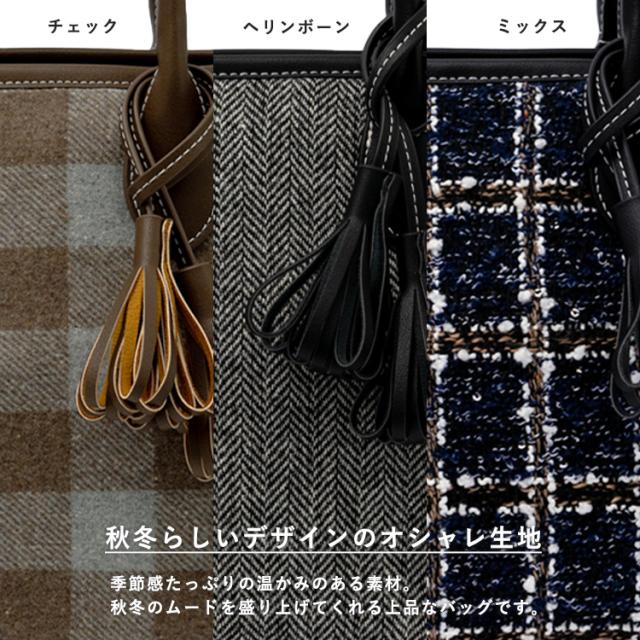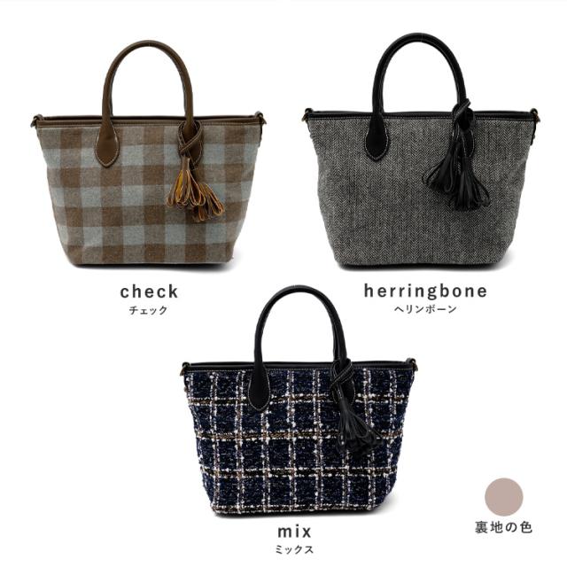 トートバッグ 小さめ レディース ハンドバッグ タッセル ツイード チェック柄 ヘリンボーン グレンチェック 舟形 2way 肩掛け 斜め掛け ミニバッグ inb-10169z新生活