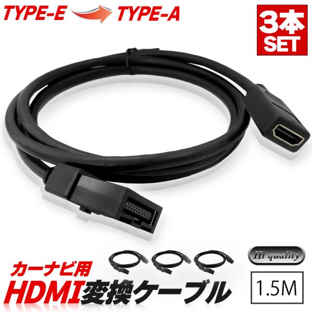 カーナビ用 HDMIケーブル 変換 3本セット TYPE-E TYPE-A カーナビケーブル 1.5m HDMI ケーブル Eタイプ 1.5m タイプE タイプA 純正ナビ 車外ナビ ミラーリング スマホ タブレット HDMI接続機器 車 動画 SNS 共有 家族 旅行